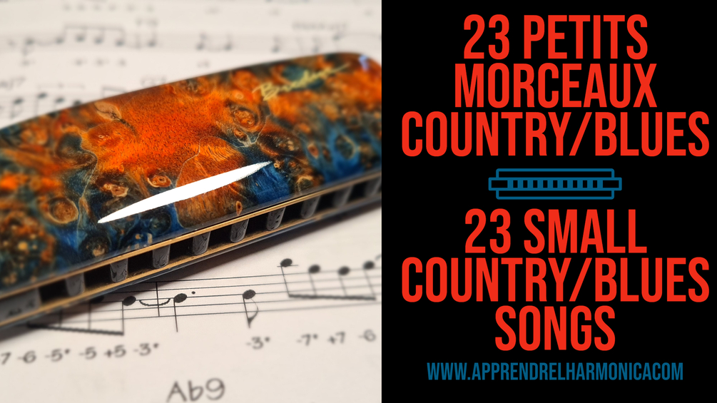 The practice of these 23 pieces will allow you to confront the main technical difficulties encountered by today's blues and country harmonica player.